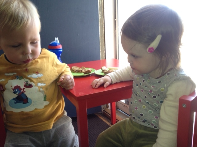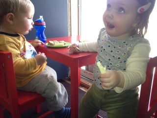 Juney and I went over to visit Aunt Mindy and Paul last Sunday while we had a showing at the house. They played and giggled and explored every inch of space at their house. They were adorable and it was so fun to watch their interactions. We set up Paul’s little table in front of the door for lunch for them to dine al fresco(ish).