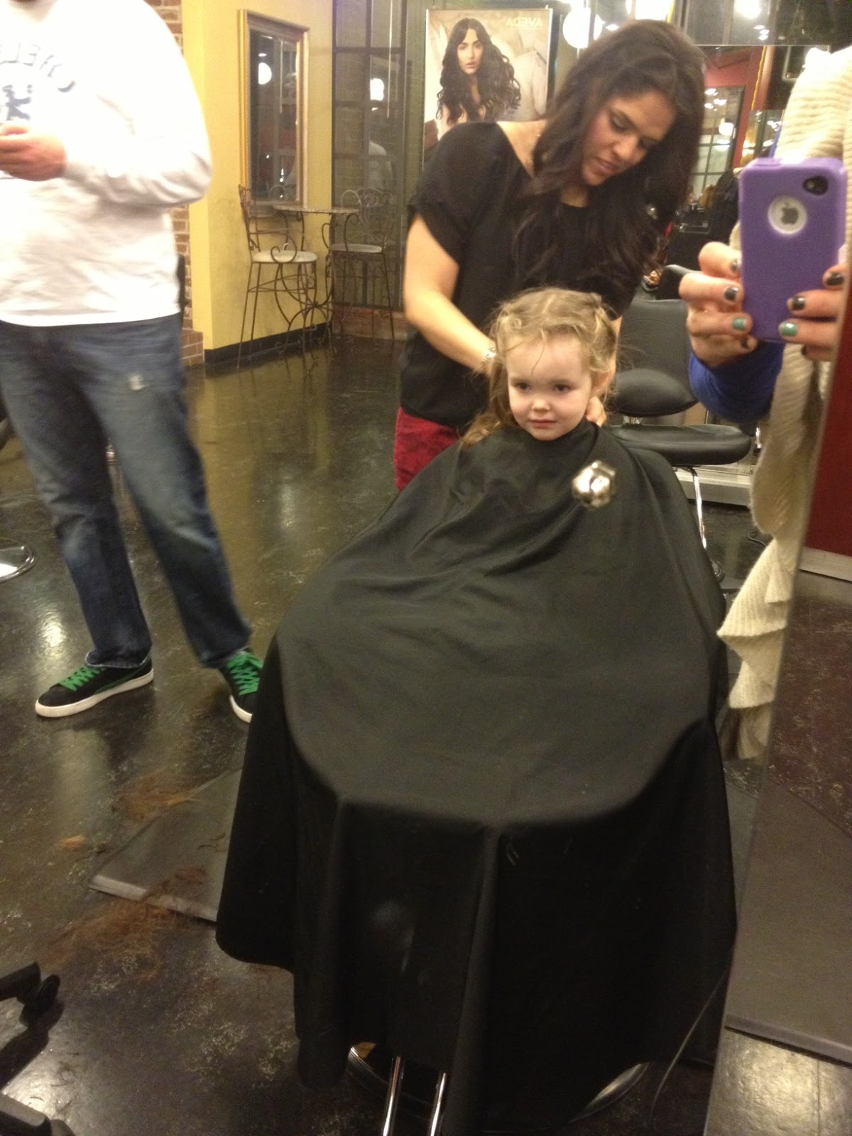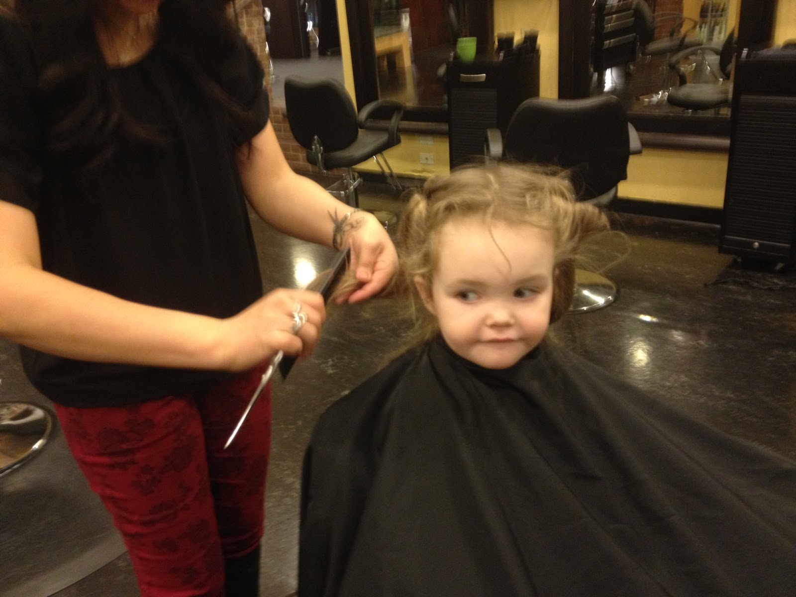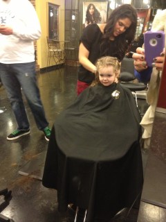 On Valentine’s Day – or also known as “family haircut day,” we all ventured to my salon to get haircuts. We all came out unscathed. June was a little skeptical, but sat still for just long enough to get a trim and a few curls. Then of course a run throughout the salon in her Valentine’s Day dress.