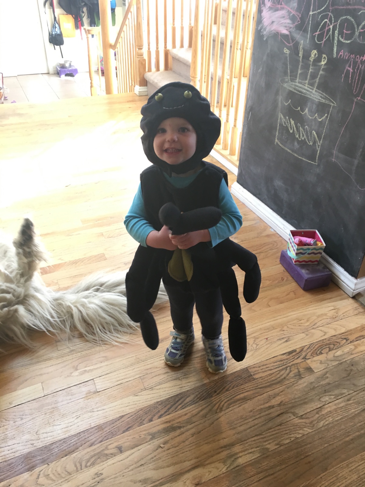 Anonymous says: October 19, 2015 at 12:38 am Reply Great costume,Mabes! I see you scare Louie, he is on his back in a faint! XO Grandma Julie LikeLike
