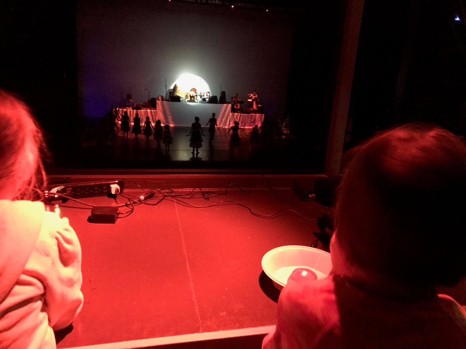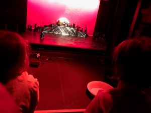 My friend is the art director for a dance studio and they do a big production each spring. I didn't think the girls would sit well for the show, so he let us come to dress rehearsal and it was awesome! They loved it and were pretty excited to see his work, the dancers and the drums.